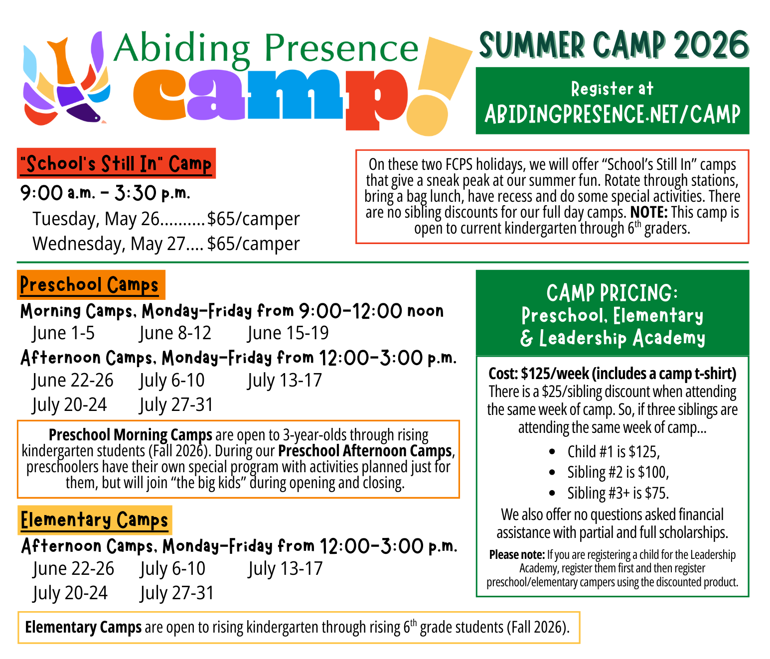 SUMMER CAMP at ABIDING PRESENCE LUTHERAN CHURCH